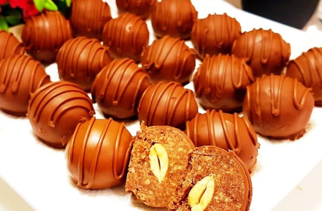 Saldainiai, pagaminti iš sausainių ir kondensuoto pieno. Viduje galite įdėti bet kokį įdarą pagal savo skonį – riešutai, šokolado gabalas, marmeladas, zefyras, zefyrai, uogos ar sausų vaisių gabaliukai – bananai, ananasai ir kt. Paruošimui jums reikės tokių ingredientų: – sausainiai, 500 g; – kondensuotas pienas, 400 ml; – kakava, 4 šaukštai; – migdolai arba riešutai, […]
