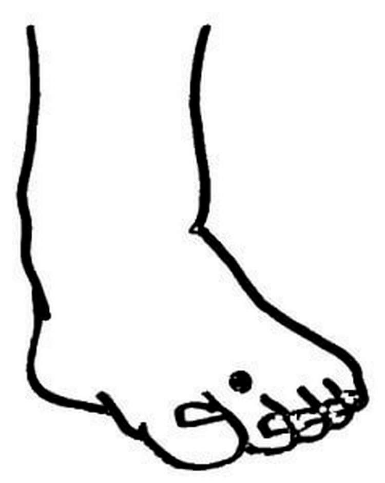 Neiting taškas (1 pav.) yra priešais antrąjį ir trečiąjį metatarsofalangealinius pėdos sąnarius.