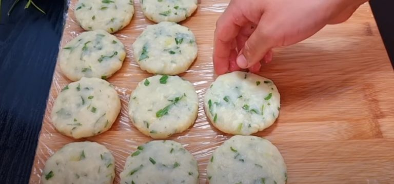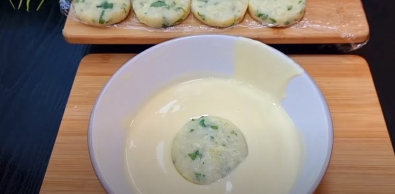 Virtos bulvės paverčiamos tyrėmis su kiaušiniu ir tarkuotu sūriu, smulkiai supjaustytomis žaliomis. Į savo skonį įpilkite druskos, pipirų, kvapnių žolelių.