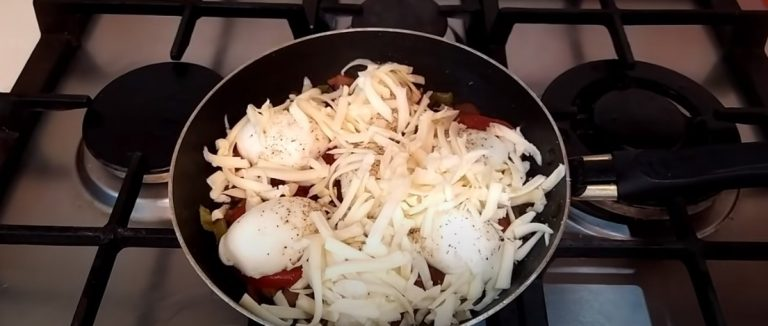 Iš viršaus mes pabarstome tarkuotu sūriu, uždengiame dangčiu ir troškiname ant nedidelės ugnies prieš sūrio tirpimą.