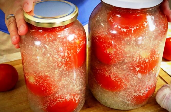 Pomidorai, uždaryti tokiame marinate su česnaku – tai aštrus ir kvapnus užkandis. Tokių pomidorų skonis tiesiog neperkeliamas, ir jūs visada juos darysite žiemai.