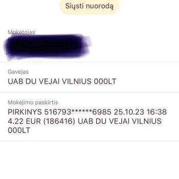 „Siunčiu jums mokėjimo kopijas, kadangi čekių nepasiėmiau. Data nurodyta, kaip gautas gėris…