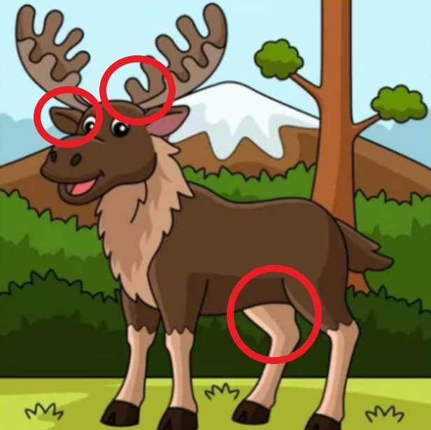 Norint pastebėti pirmuosius du skirtumus, nukreipkite savo žvilgsnį į briedžio ausis ir ragus.