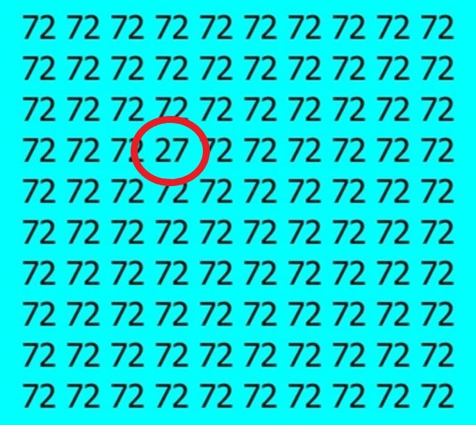 Sakoma, kad tie, kuriems pavyksta pamatyti skaičių 27 iš kone pirmo karto, turi neabejotinai puikų regėjimą. Kviečiame jį pasitikrinti ir jus, atliekant šią užduotį, kurioje viskas, ką reikia padaryti, yra tik surasti kitokį skaičių.