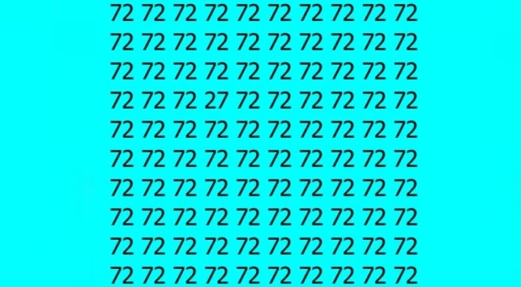 Atlikti šią užduotį gali būti sunkiau nei atrodo, kadangi šiame paveikslėlyje yra šimtas skaičių. Tarp 72 yra pasislėpęs skaičius 27.