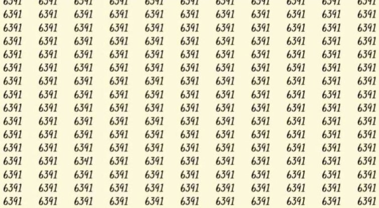 Jūsų užduotis – pastebėti kitokį pasislėpusį skaičių. Nustatykite laikmatį 10 sekundžių ir išbandykite savo jėgas, ar pavyks rasti skaičių 6341.