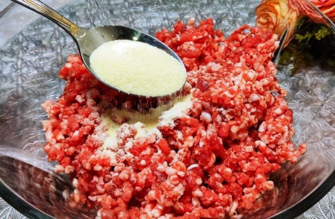 Mėsai apkepus, pagardiname prieskoniais – druska, pipirais, saldžiąja paprika, ciberžole, žolelėmis ir cinamonu.