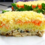 Kiaušiniai yra smulkiai supjaustyti, žali svogūnai arba krapai ir petražolės nupjautos.