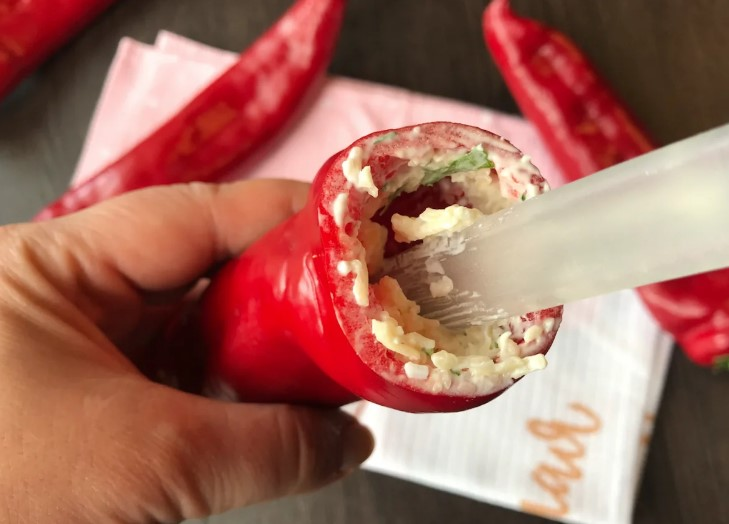 Mes sutrypiame masę pipiruose, tiesiog nepamirškite pašalinti sėklų ir nupjauti peduncles. Mums tai taip pat patinka.