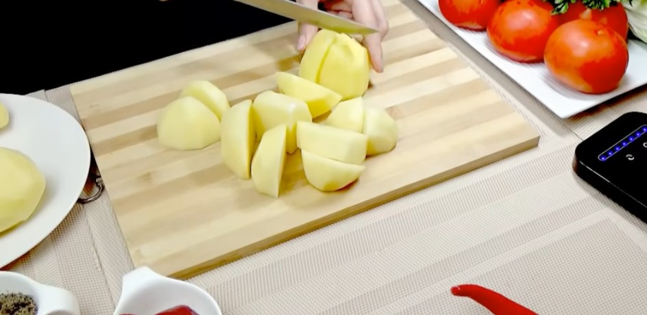 Bulves išvalykite ir supjaustykite stambius gabalėlius.