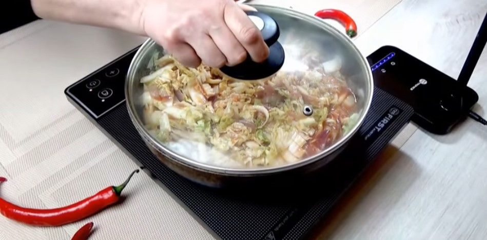 Uždenkite dangtį ir troškinkite ant nedidelio ugnies 10 minučių.