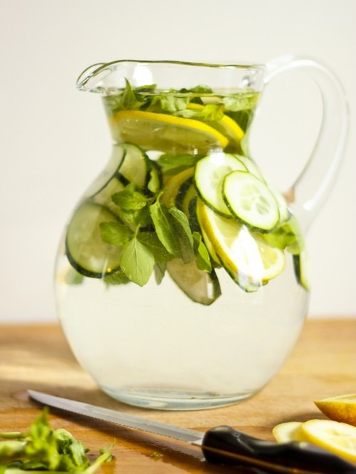 Supjaustykite agurką ir citriną, įberkite mėtų, viską užpilkite vandeniu ir palikite pritraukti per naktį. Mėgaukitės šiuo gėrimu kiekvieną dieną; jis iš organizmo pašalina visus nereikalingus toksinus, todėl būsite sveikesni ir gražesni.